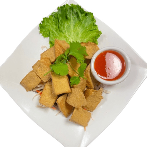 Deep Fried Tofu serves with Sweet and Sour Sauce top with Peanut.