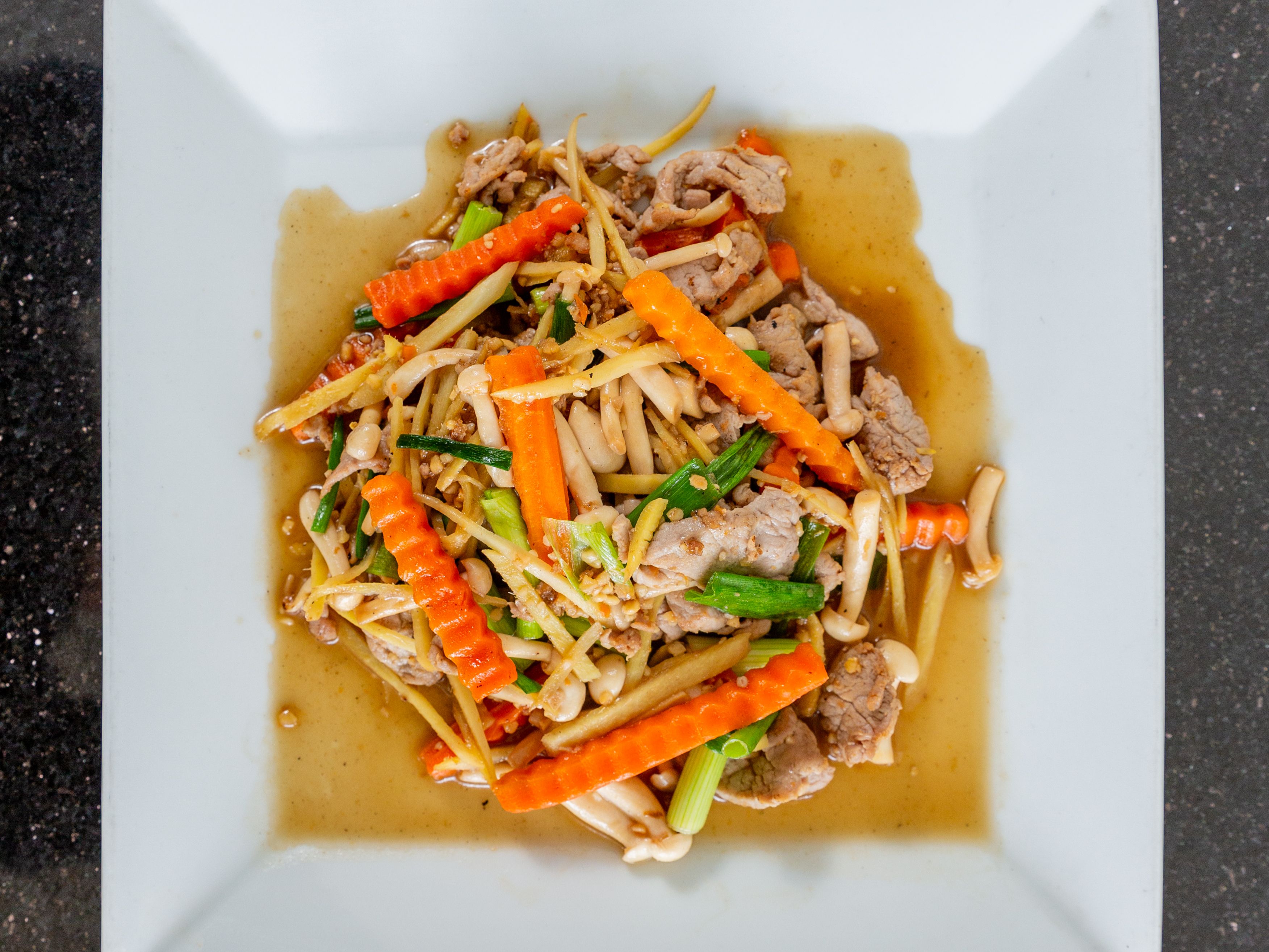 Sautéed fresh ginger, mushrooms, carrots, and green onions.