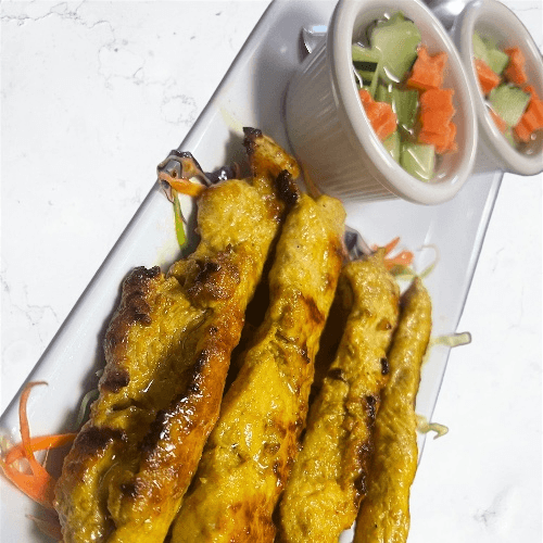 Grilled Marinated Chicken serve with Homemade Peanut Sauce and Cucumber Sauce.