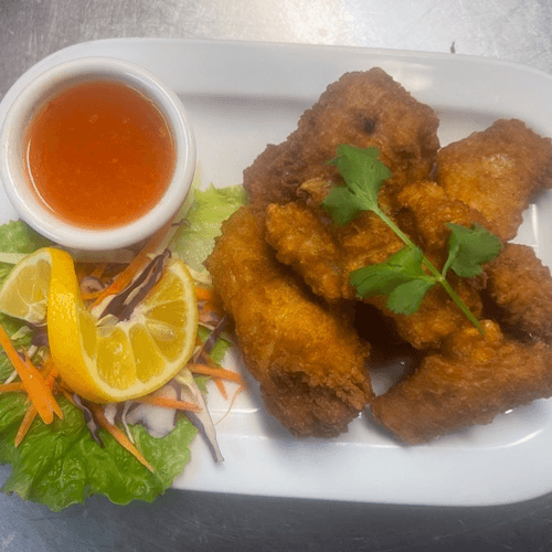 Chicken Wing deep fried to Golden Brown. Serve with Sweet and Chili Sauce.