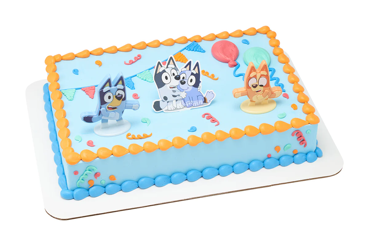 Combine any of our freshly-made Ice Cream flavors and Mix-ins with your choice of moist Yellow, Red Velvet or Devil's Food cake and we’ll decorate with a Bluey design and topper.