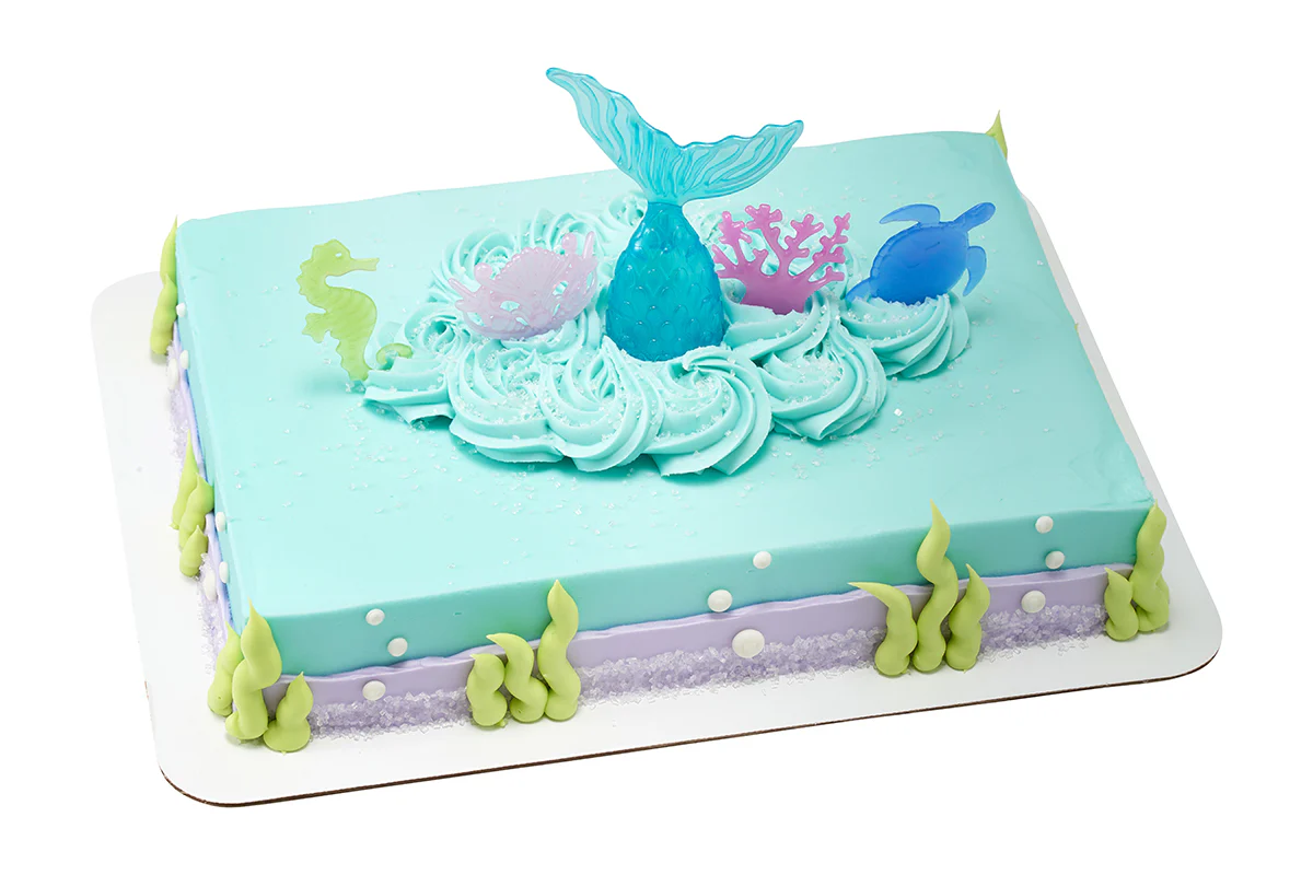 Combine any of our freshly-made Ice Cream flavors and Mix-ins with your choice of moist Yellow, Red Velvet or Devil's Food cake and we’ll decorate with a Mermaid design and topper.